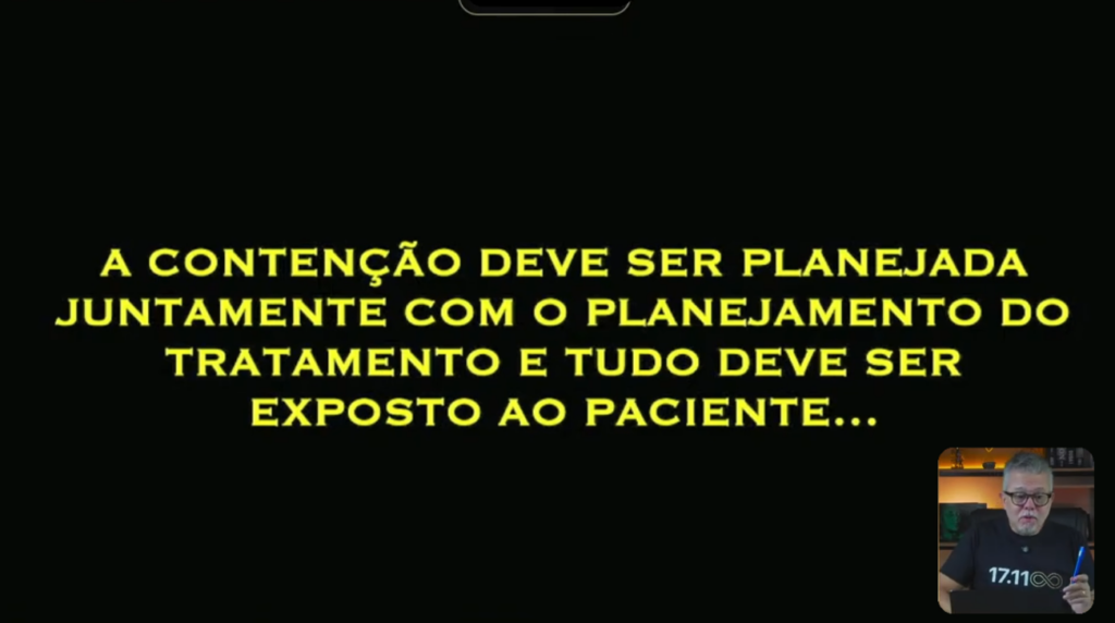 A contenção, a gente precisa conversar sobre isso e planejar essas contenções no início do tratamento, junto com o planejamento ortodôntico.