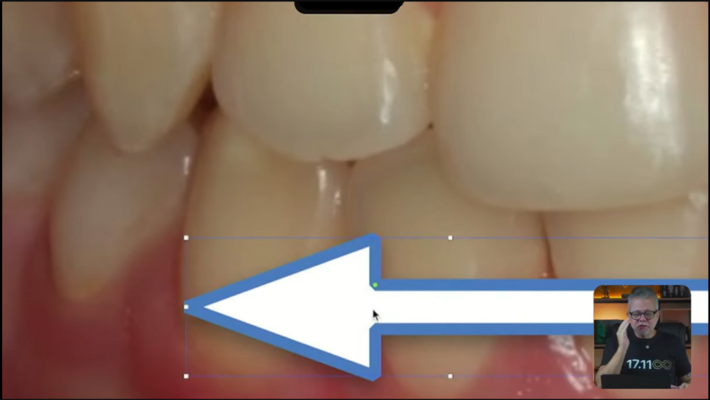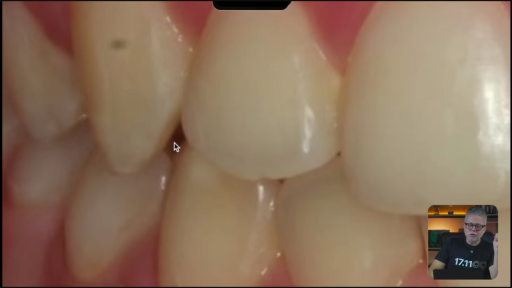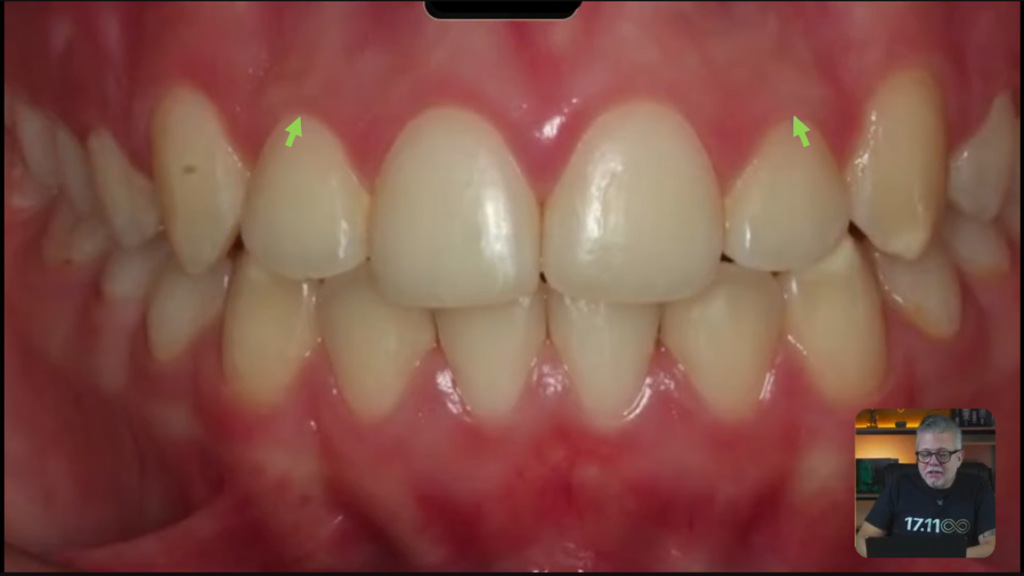 Alguns detalhes como, vejam que parece que tem um espaço escurecido aqui no incisivo lateral: