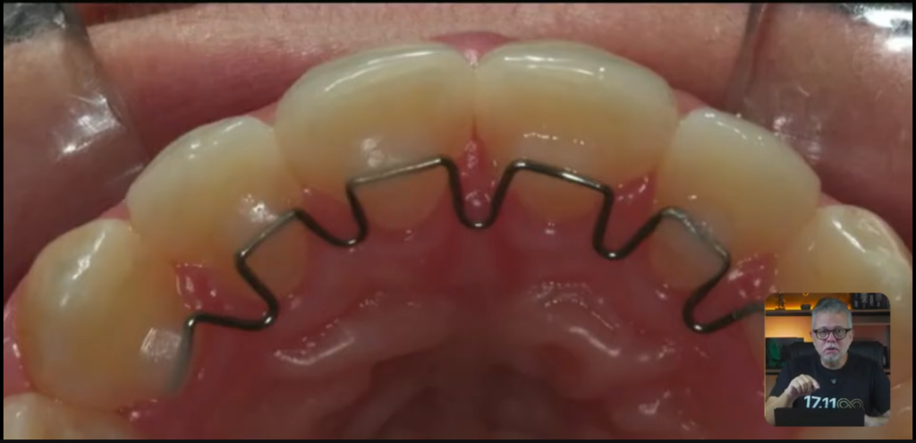 Mas eu nunca vi uma contenção higiênica causar esse problema nos dentes superiores.
